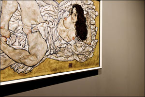 A l'opposé, les dessins de Schiele sont autant d'interrogations obsessionnelles sur la représentation du corps et la préfiguration de la mort. Leur érotisme cru et terriblement expressif privilégie Thanatos.