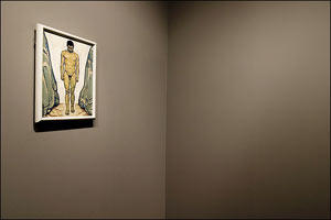Les toiles de Moser sont empreintes d'un ésotérisme doucereux du fait des couleurs employées ("Jeune homme debout").