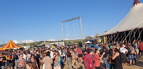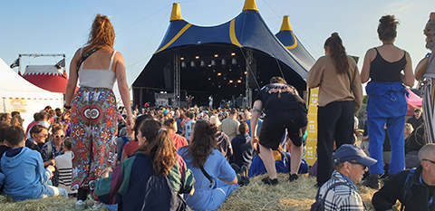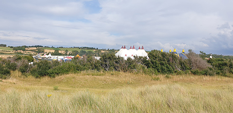 Nous sommes de retour près de la plage de Montmartin-sur-Mer en fin de journée pour le deuxième jour du festival. Dès le début de la soirée, le nombre de festivaliers est déjà bien plus important que la veille. Il faut dire qu’il y a eu des animations sur le site toute la journée et certains festivaliers ont profité de la plage avant de venir.