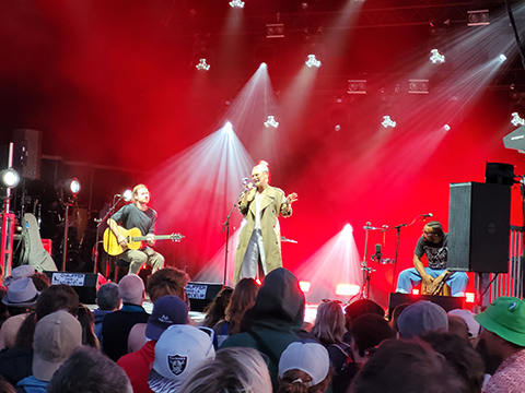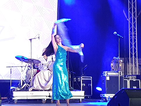 Enerjy, son quatrième album, est sorti en mai dernier. Chanté en Farsi, enregistré à Téhéran avec des musiciens iraniens, ses chansons sont à destination des femmes qui se battent pour leur liberté sous le régime des mollahs. Et lorsqu’elle appelle le public à applaudir le courage de ces femmes, les festivaliers répondent présent. Chantant et dansant devant ses musiciens tout de blanc vêtus (dont le sosie de Weird Al Yankovich à la guitare), Liraz a su conquérir le public.